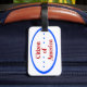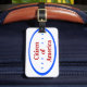 This luggage tag displays a badge stating "Citizen of America" with three blue stars on each side of the text and a blue rim around the edge.