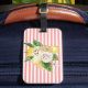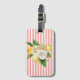 Étiquette À Bagage Citrons et roses à rayures roses