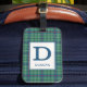 Marque de bagage avec l'ancien tartan pour Clan Duncan et ses septs. Datant de 1880, ce motif écossais traditionnel en plaid, dans les tons vert clair et bleu avec des reflets rouge, noir et blanc, présente des couleurs qui représentent des teintures organiques utilisées dans la production textile précoce. Personnalisez avec votre initiale et votre nom de famille sur une plaque de couleur claire pour faciliter la lisibilité.