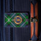 Clan Forbes crête badge entouré d'une sangle et boucle sur l'arrière - plan tartan. Texte personnalisé des deux côtés.