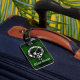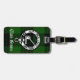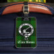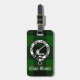 Une étiquette à bagages élégante comporte un badge de crête de clan écossais et du texte sur l'arrière - plan tartan.