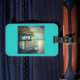 Vous pourrez trouver votre bagage noir à l'aéroport avec cette étiquette lumineuse. Caractéristiques de conception ce par bar et grill sur la plage avec la légende 'club louche de plage." Peints du côté de la plate-forme sont les mots "Bienvenido bienvenu."