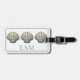 This beautiful monogrammed luggage tag features three coastal scallop seashells in soft watercolor shades of blues and tans and monogram on the front with contact information on the back. Personalize the monogram with your choice of initials and contact information with your choice of special text. Great for personalized gift bags.
