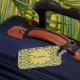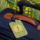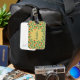 Un design vert dominant avec des coeurs rouges et des coeurs motifs. Il s'agit d'un design mignon et accrocheur pour rendre les bagages debout sur le tapis de convoyeur. Il suffit de le customiser avec votre nom de famille et de l'attacher à votre valise !