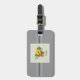 Company logo luggage tag in gray tones. Include your logo on one side, with name and contact information on the other. Light gray color with logo in center over thin stripes. On the back, dark gray with printed white text.