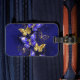 Composition des luxueux papillons saphir et bijoux en or sur arrière - plan bleu texturé.