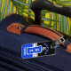 Étiquette À Bagage Conception bleue, blanche et noire de sport