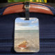 Étiquette À Bagage Conque Shell en sable sur la plage tropicale