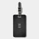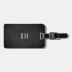 Cette étiquette de bagage monogramme moderne et élégante présente vos initiales sur cuir noir foncé imprimé dans un design classique de typographie cool. Sur le dos, il y a de l'espace pour votre adresse.