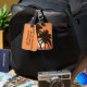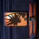 Deux palmiers contre un coucher de soleil éblouissant. Gardez un peu de vos vacances avec vous avec cette étiquette de bagage. Le dos contient du texte personnalisable pour une identification plus poussée.