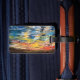 Tableau original d'un coucher de soleil dans le désert. Créé à l'aide de peintures acryliques.