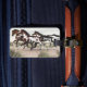 Un trio de chevaux peints galop à travers une scène désertique du sud-ouest dans cette oeuvre numérique originale en 3D de Jayne Wilson. L'inverse est personnalisable pour que vous puissiez ajouter votre nom et votre adresse à vos étiquettes de bagages.