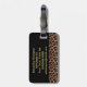 Une étiquette élégante de bagage avec une frontière de poster de animal de léopard dans bronzage, brun et noir. Des initiales sur l'information d'avant et de contact dessus de retour sont montrées en texte coloré par or. La couleur gauche de rayure peut être changée en cliquant sur la PERSONNALISER IL, EDIT, puis ARRIÈRE - PLAN.