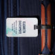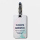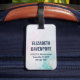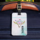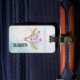Une étiquette de bagage personnalisée sur le devant et vos informations personnelles sur le dos. Conçu avec un arrière - plan d'aquarelle turquoise et pastel. Un crâne animal chic boho avec un bouquet floral sur la tête et des petits papillons qui fleurissent. Une jolie bordure décorative aux petites teardrop en bleu clair.