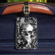 Étiquette À Bagage Crâne noir et blanc de rose sur le fond de
