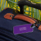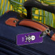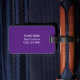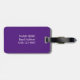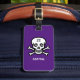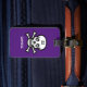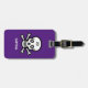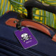 Crâne sur étiquette de bagage royale violet. Textes et chiffres prêts à être personnalisés.