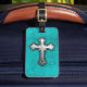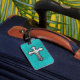 Étiquette À Bagage Croix turquoise en métal