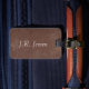 Cette étiquette de bagage comporte une image d'une couverture de livre en cuir brune vintage. Note : l'étiquette n'est pas faite à partir du cuir vintage.
