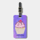 Balise bagage personnalisée avec un nom et une adresse. Conçu avec l'illustration d'un cupcake à l'allure délicieuse. Le gel rose et les gouttelettes de chocolat. Porte-cupcake jaune et framboise sur le dessus. Yummy ! L'arrière - plan est une texture abstraite violette avec de petits coeurs parsemés autour.