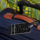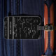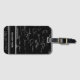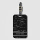 Unique luggage tag with a pattern of mathematic equations and graphics over a black background. Personalize the tag with your name. Illustrated and designed by Patricia Alvarez.