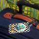 Personalized, adorable Dino Racer luggage tag as a cute dinosaur takes the wheel of a racing car, igniting excitement and fun. Perfect for little dinosaur enthusiasts and racing fans.