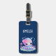 Une étiquette à bagages avec l'image d'une pieuvre girly mignonne avec une fleur sur la tête. De grands yeux brillants et un visage amical.