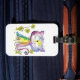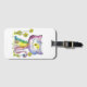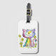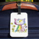Étiquette À Bagage Cute Whimsical Happy Chat avec Fleur Jaune