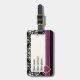 Étiquette À Bagage Damas noir blanc avec bande violette et coeur