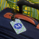 Étiquette À Bagage Damassé élégante d'arabesque bleue et vert