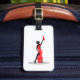 Danseuse de flamenco peint en rouge et noir. Elle tient un ventilateur et se tient sur une plate-forme.