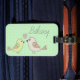 Balise de bagage adorable avec illustration inséparable sur un arrière - plan de pois vert pastel. Option de personnalisation.