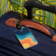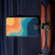 Ondes de style rétro illustration motif géométrique avec décor rayures jaunes, orange, bleues, bleu marine et turquoise