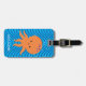 Une pieuvre de dessin animé orange mignonne. Étiquettes de bagages pour bébé animal. Éditez le nom pour personnaliser. Version motif vague bleue. Idée cadeau pour les enfants.