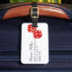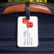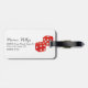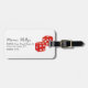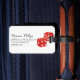 Cette étiquette à bagages personnalisée présente un thème de casino simple et chic. Une image de dés de style parties scintillant rouge est illustrée à droite, avec le nom et l'adresse à gauche. Il est parfait pour un ventilateur de craps, ventilateur de bunco, ou autre jeu de roulement de dés.