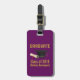 Une étiquette de bagage au design chic illustrée d'une casquette et d'un diplôme de fin d'études. Texte dit : Classe de fin d'études de 2018 (vous pouvez customiser l'année) et le nom du diplômé. Placez-vous sur un joli arrière - plan violet avec des lettres dorées. Simple, moderne et élégant.