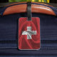 Étiquette de bagage avec le drapeau de la Suisse dans un style de tissu ondulé. Cette conception présente les couleurs et le design du drapeau suisse avec un bel effet de texture de matériau ondulé. Ce design de drapeau est un excellent moyen de montrer que vous êtes fier de provenir de Suisse.