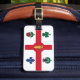 Bagages Tag avec le drapeau de Montréal, la ville la plus peuplée de la province de Québec, Canada. Drapeau blanc à croix rouge, pin blanc, fleur de lys bleu, rose rouge de Lancaster, shamrock et chardon