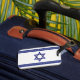Le drapeau d'Israël a fait en utilisant des images de pierres précieuses comme les saphirs coupés d'émeraude, les saphirs en forme de marquise, les saphirs triangulaires et les diamants, ainsi que les diamants ronds.