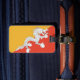 The Bhutanese flag is a diagonally flag with emblem. The used colors in the flag are orange, yellow, white. The proportion of the Bhutanese flag is 2:3. Le Drapeau du Bhoutan a adopté en 1969. La première utilisation de la création de current flag design en 1947. The last change to the current Bhutanese flag design, en 1969.