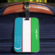 Drapeau national de l'Ouzbékistan Bagage patriotique Tag avec le drapeau de l'Ouzbékistan imprimé sur l'un des côtés du tag. Le nom du pays écrit avec la police vibrante est intégré dans la conception du fond. Le texte est entièrement personnalisable à l'aide de la fonction "Customiser !". L'autre côté de la balise est réservé à vos informations. Cette adorable étiquette de bagage d'Ouzbékistan est le compagnon parfait pour votre sac de voyage et le beau cadeau pour toute occasion. © PaysDuMonde