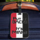 Drapeau national du Yémen Drôle Funny Bagage patriotique Tag avec le drapeau national du Yémen couleurs recouvrant le côté avant de l'étiquette. Drôle texte "Rentre-le ! C'est MINE" est écrit sur les couleurs du drapeau. Le texte est entièrement personnalisable à l'aide de la fonction "Customiser !". L'autre côté de la balise est réservé à vos informations. Cette étiquette super fun Yemen Luggage est le compagnon parfait pour votre sac de voyage et le cadeau adorable pour toute occasion. © PaysDuMonde