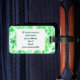 Ce tag mignon et drôle a un arrière - plan motif vert fantaisiste des deux côtés. L'avant dit Ne pars pas sans moi ! dans une teinte assortie de turquoise foncé et d'une police amusante. L'arrière a un espace réservé blanc pour votre texte personnalisé dans une police différente mais la même couleur turquoise foncée. Ce design est entièrement personnalisable.
