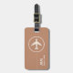 An elegant item with the graphic image of a white airplane in a circle, on terracotta brown background personalized with your name and initials... to identify your belongings.