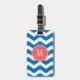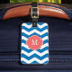 Étiquette À Bagage Éblouissante Bleue et Blanc Chevron Monogramme Bag