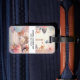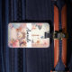 A luggage tag with a stylized Eiffel tower image surrounded by pretty butterflies and delicate garden flowers.