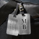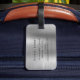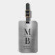 Élégante étiquette de bagage en métal brossé monogrammé argenté.