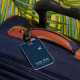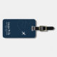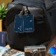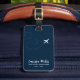 Un design simple, moderne et élégant avec un plan stylisé avec un sentier pointillé sur un arrière - plan bleu foncé, personnalisé avec le nom du voyageur et des mots personnalisés "nouvelles aventures de voyage". Une étiquette avec un nom est importante pour plusieurs raisons pratiques lors du voyage. Premièrement, il sert de moyen rapide et facile d'identifier vos bagages parmi la mer de sacs similaires dans les aéroports, les gares routières ou d'autres centres de transport. Cela peut vous faire gagner du temps et réduire le risque de prendre accidentellement le sac de quelqu'un d'autre ou de faire prendre le vôtre par quelqu'un d'autre. Deuxièmement, une étiquette de bagage avec votre nom fournit un lien d'information de contact crucial en coque votre sac se perd. Dans le malheureux cas où vos bagages sont déplacés pendant votre voyage, le fait d'avoir votre nom et vos coordonnées sur l'étiquette facilite grandement la réunion du personnel de la compagnie aérienne ou du transport avec vos effets personnels. Cette simple mesure augmente les chances d'un processus rapide et précis de récupération.