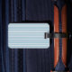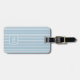 Élégante étiquette à bagages rayés bleu bébé, cette étiquette peut être customisée avec les initiales des propriétaires, parfait pour l'école