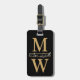 Étiquette À Bagage Elegant Black Gold Monogram Name