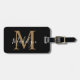 Étiquette À Bagage Elegant Black & Gold Monogram | Script Name